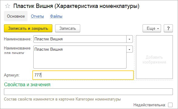 Появилась возможность указать артикулы для характеристик номенклатуры. Теперь можно указывать отдельные артикулы для характеристик номенклатуры, а также выполнять поиск и подбор номенклатуры по артикулам характеристик в списке и в документах. Артикул характеристики можно вывести в отдельную колонку в списке.