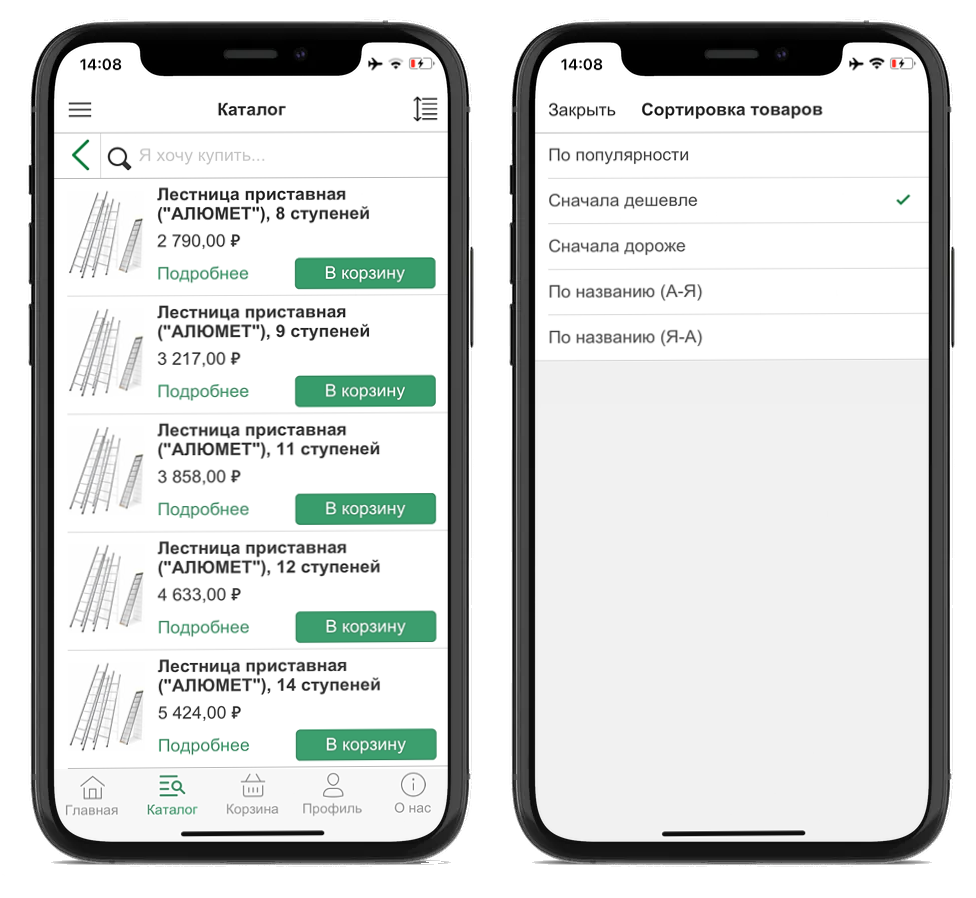 Клиенты, выбирая товары в мобильном приложении "Кабинет клиента", теперь могут сортировать товары по популярности, цене и наименованию с помощью новой кнопки Сортировка в правом верхнем углу.