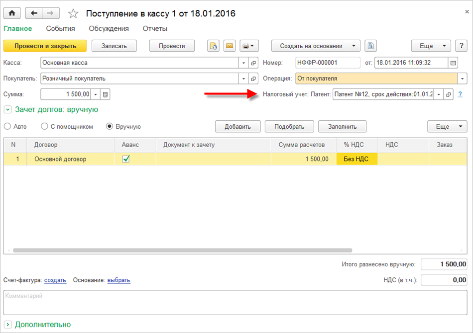 Кроме того, регистрировать доходы по патенту можно вручную.