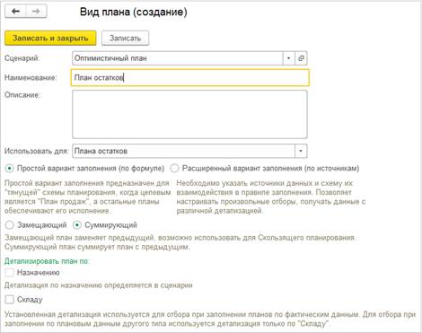 В разрезе сценария товарного планирования можно указать несколько видов плана с типом План остатков: