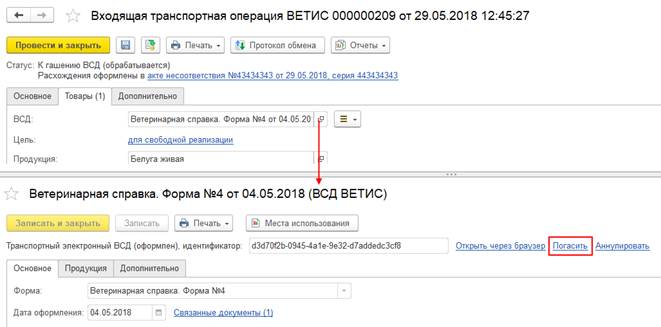 При закупке продукции ВЕТИС должен погашаться входящий сертификат, с которым поставлена продукция, и оформлен новый исходящий ветеринарный сертификат на эту продукцию.