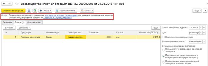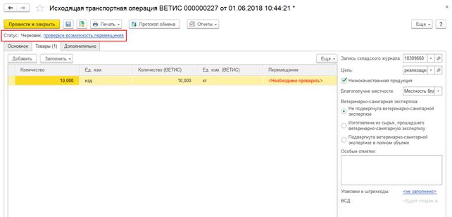 Оформление ветеринарно-сопроводительного документа доступно при отражении следующих операций: