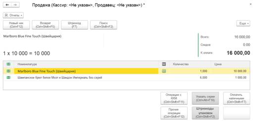 Возможность продажи отсканированных позиций проверяются по данным информационной базы и по данным в информационной системе мониторинга оборота табачной продукции (ИС МОТП). Продажа возможна только при успешной проверке товаров.
