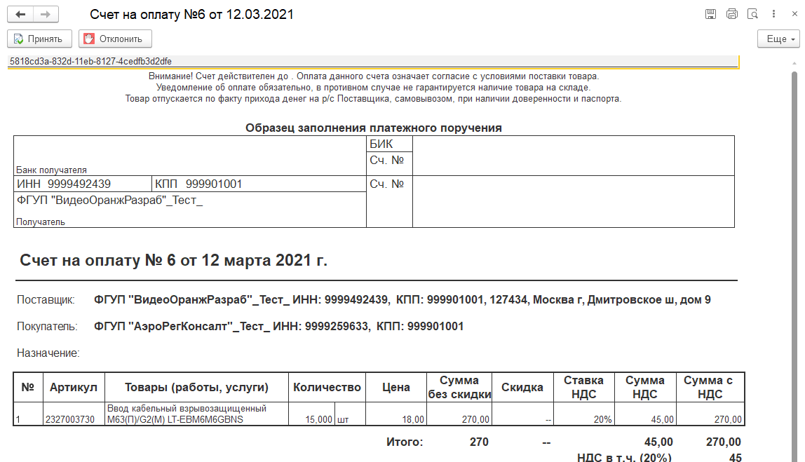 отправляемого документа: