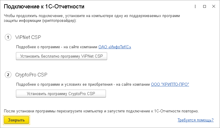 - Установить один из криптопровайдеров: ViPNet CSP