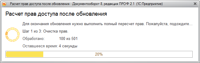 запускается полный пересчет прав. Пересчет выполняется автоматически и состоит
