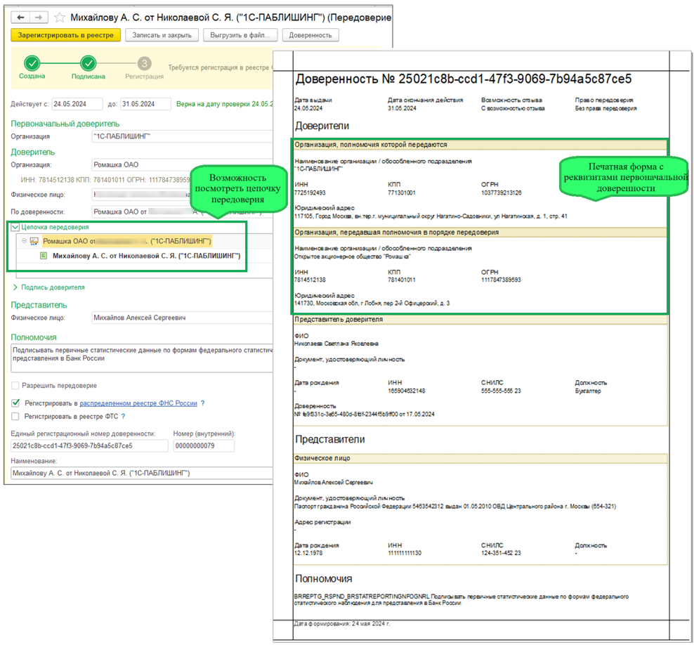 СтандартныйВариант в процедуре УправлениеДоступомПереопределяемый.ПриОпределенииНастроек (подробности см. в документирующем комментарии к ней). Это полезно, как для конфигураций, разработанных сразу только с производительным вариантом ограничения доступа, так и для конфигураций, которые запланировани отказ от поддержки стандартного варианта.ОграничениеНаУровнеЗаписей в процедуре УправлениеДоступомПереопределяемый.ПриОпределенииНастроек (подробности см. в документирующем комментарии к ней). Это полезно, как для конфигураций, разработанных без использования ограничений доступа на уровне записей, так и для специальных сборок конфигураций, например, для базовых версий (если в них не планировалась поддержка RLS). Для более точного подбора доверенностей в параметр ОписаниеДанных процедур Подписать и ОтправитьНаПодписание общего модуля ЭлектроннаяПодписьКлиент добавлено необязательное свойство ОтборДоверенностей. В этом свойстве можно указать организацию или ИНН доверителя, код полномочий, по которым будет производиться поиск доверенности, а также ключ для сохранения выбранной доверенности по сертификату в персональных настройках.