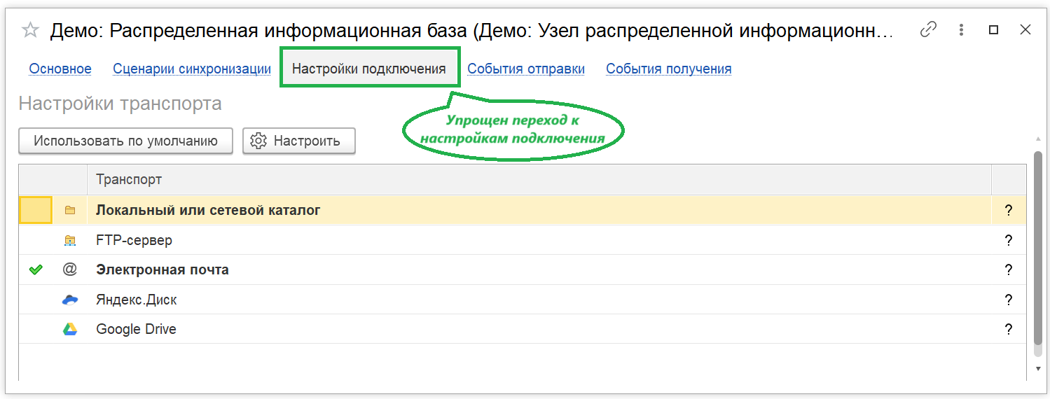 ПриОпределенииПризнакаОЗавершенииНастройкиСинхронизации Подробности см. в комментарии к ним.EnterpriseData добавлена возможность ограничивать список выгружаемых ссылочных данных, вместо выгрузки всех зарегистрированных на узле обмена изменений. Новая возможность доступна при использовании процедуры ОбменДаннымиСервер.ВыполнитьДействиеОбмена со специально подготовленными дополнительными параметрами. Пример использования: