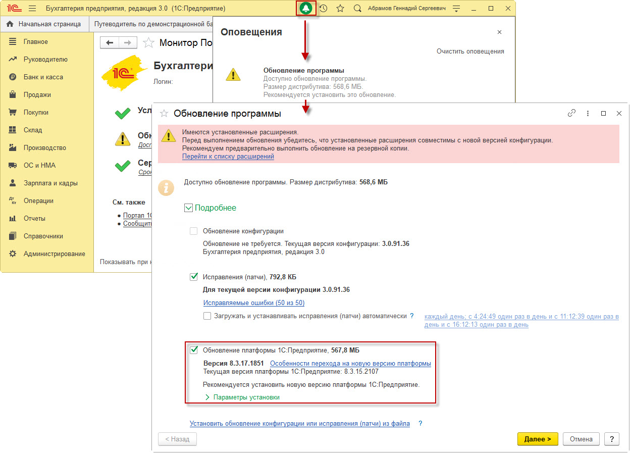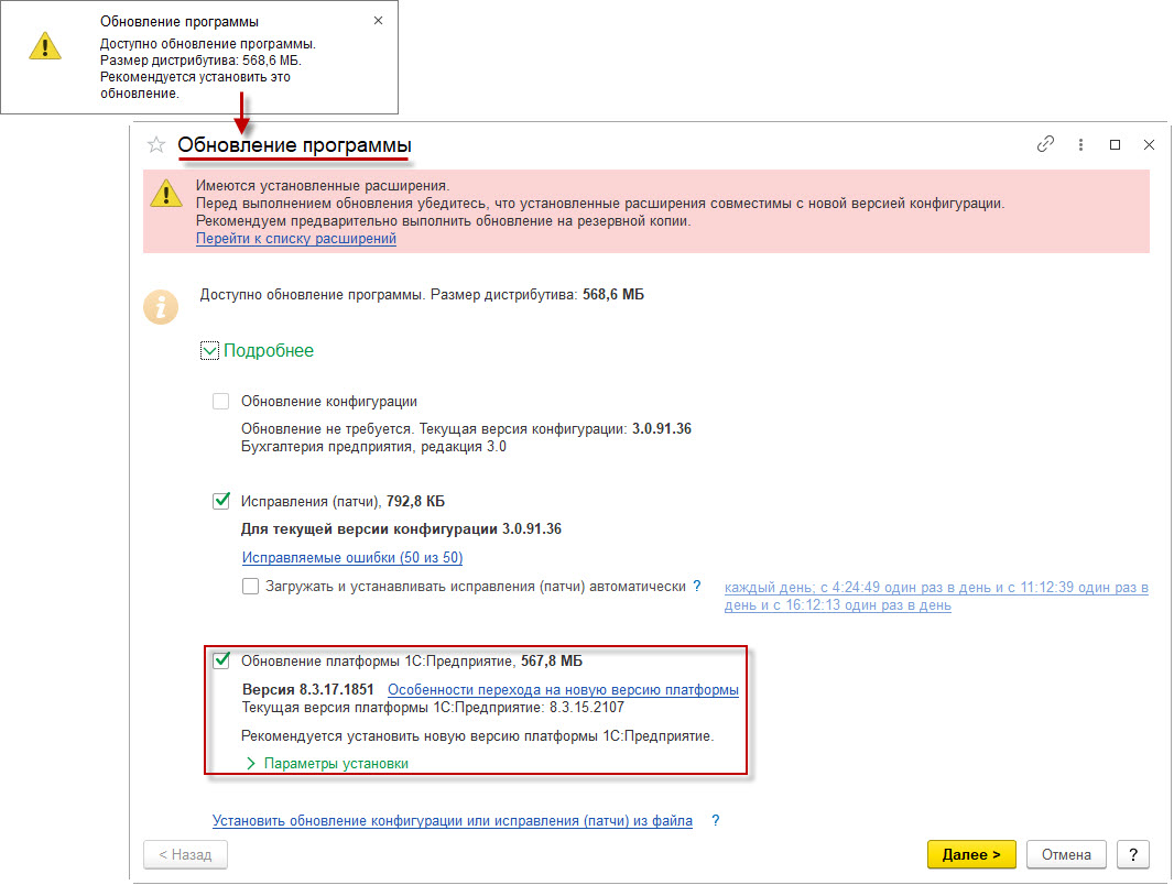 3. Порядок автоматического обновления технологической платформы 1С:Предприятие 8.3.
