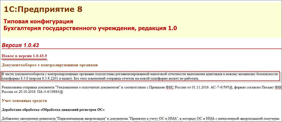 Информация для пользователей о необходимости обновления платформы 1С:Предприятие представлена: